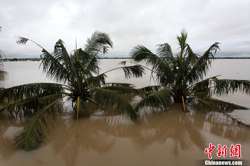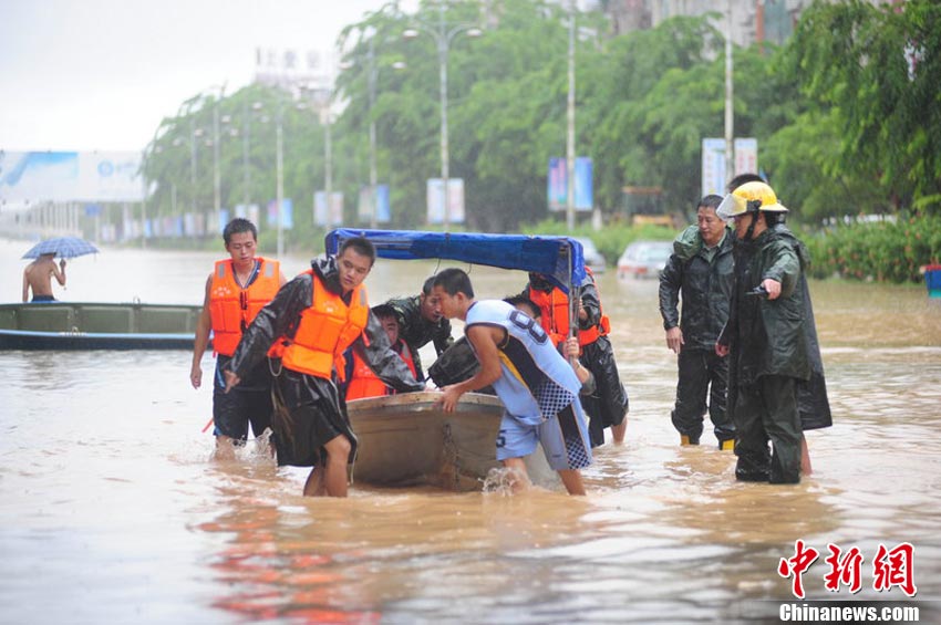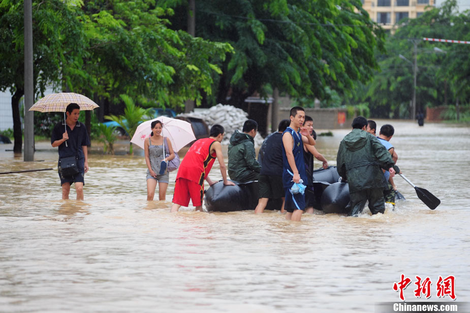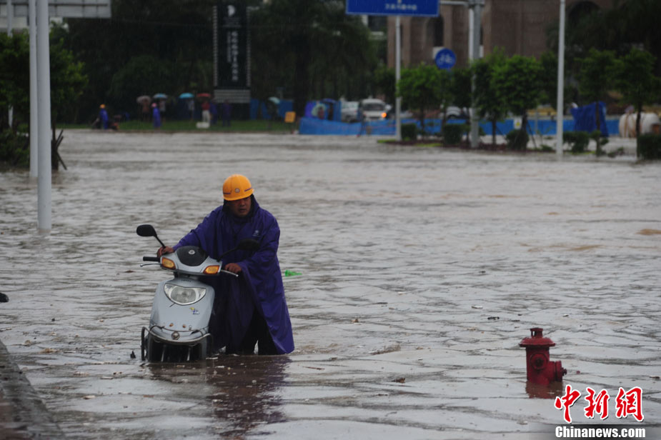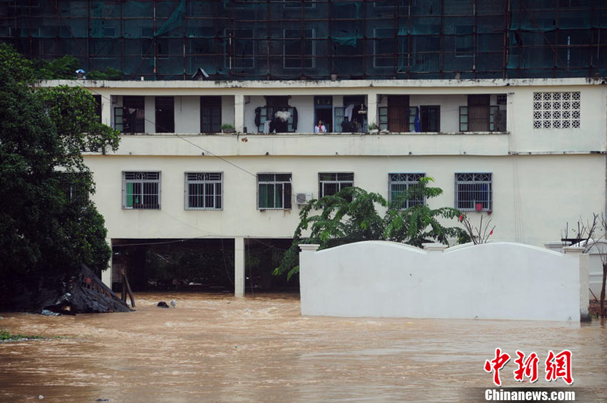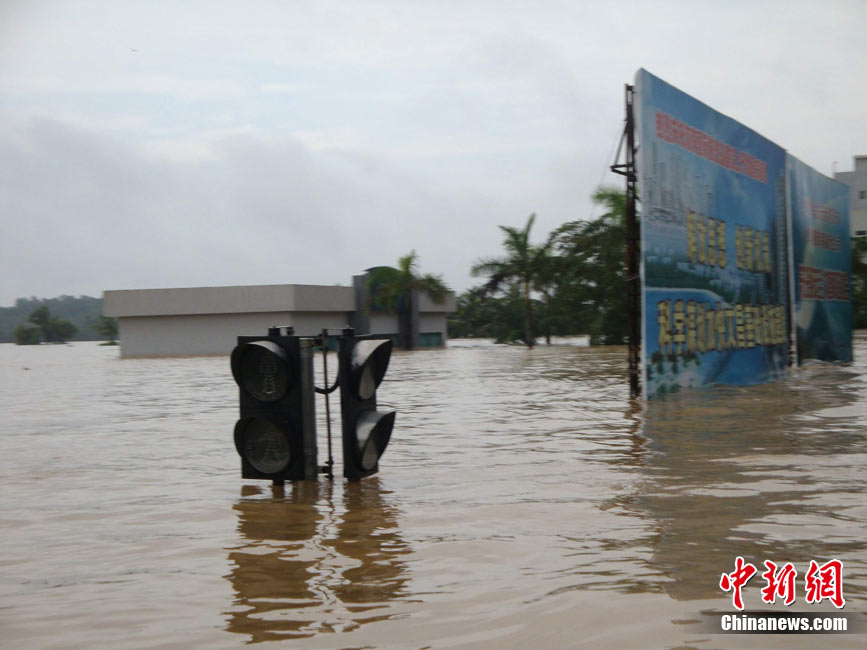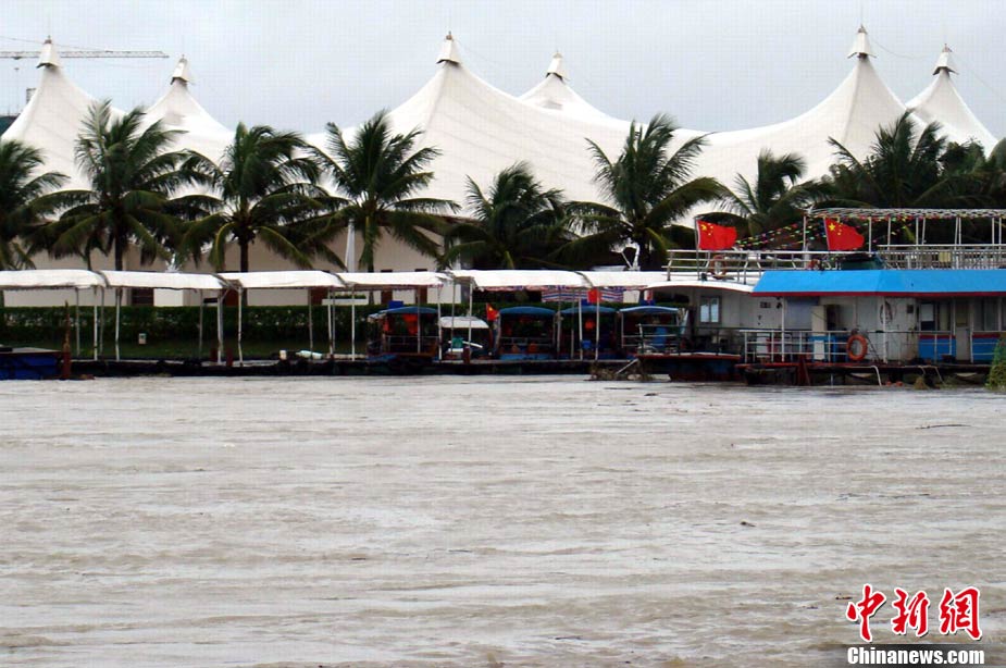 今年“十一”國慶長假期間,海南遭49年一遇持續(xù)暴雨襲擊,上百村莊被洪水淹沒,截止10月6日17時,全省已轉移受災群眾132388人。圖為位于瓊海市的博鰲亞洲論壇國際會議舊址險被洪水沖擊。中新社發(fā) 付美斌 攝
