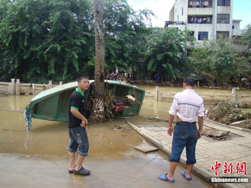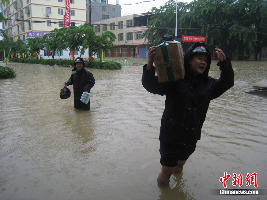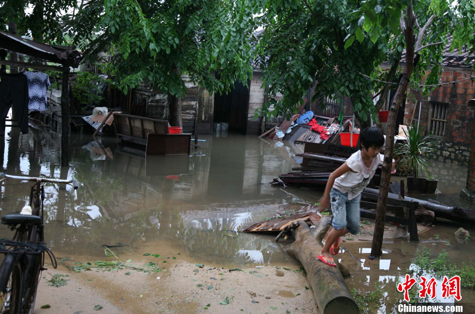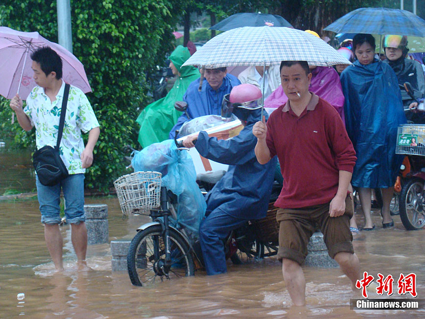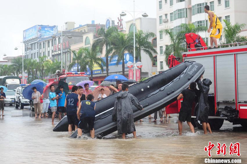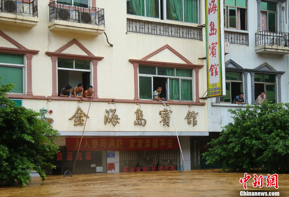 今年“十一”國慶長假期間,海南遭49年一遇持續(xù)暴雨襲擊,上百村莊被洪水淹沒,截止10月6日17時,全省已轉移受災群眾132388人。圖為位于瓊海市的博鰲亞洲論壇國際會議舊址險被洪水沖擊。中新社發(fā) 付美斌 攝