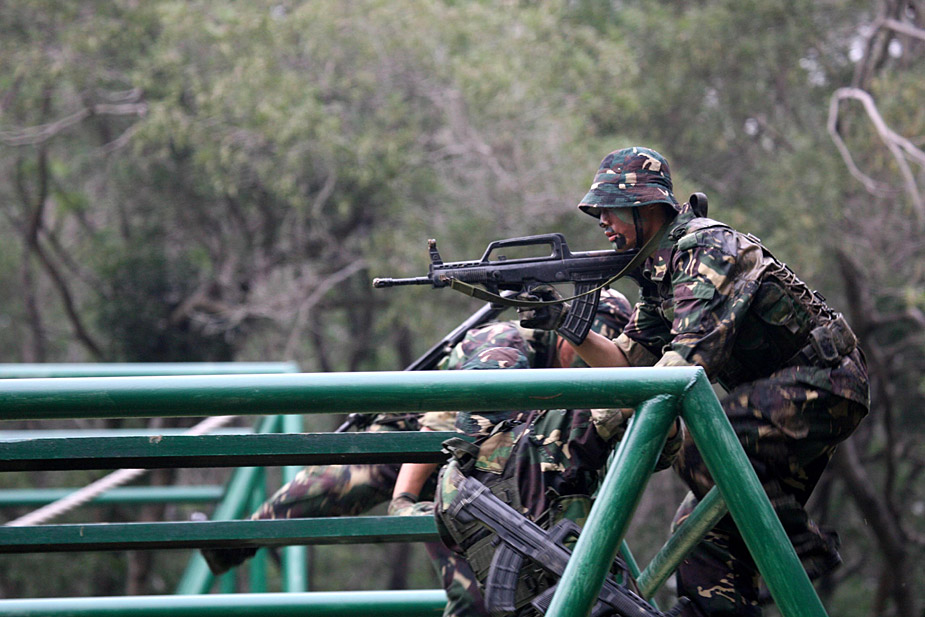 本網(wǎng)記者近日在中國人民解放軍駐香港部隊石崗營區(qū)訓(xùn)練場,觀看了駐港部隊偵察兵實彈突擊演練。身穿迷彩服、面涂油彩的戰(zhàn)士們冒著“槍林彈雨”,背負(fù)槍械攻克障礙,其間穿越火障、跨越滑橋、潛灘暗渡,更肩扛一百公斤的圓木進(jìn)行二百米極限沖刺。這些障礙項目是對戰(zhàn)士意志、體力與心理的多重磨練,連續(xù)通過二十一個項目,更是挑戰(zhàn)體能的極限。鄭祚聲 攝