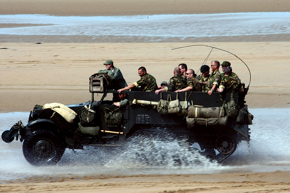 美英法等國(guó)士兵穿上二戰(zhàn)時(shí)期軍服在法國(guó)諾曼底海灘舉行“登陸戰(zhàn)”紀(jì)念諾曼底登陸65周年。