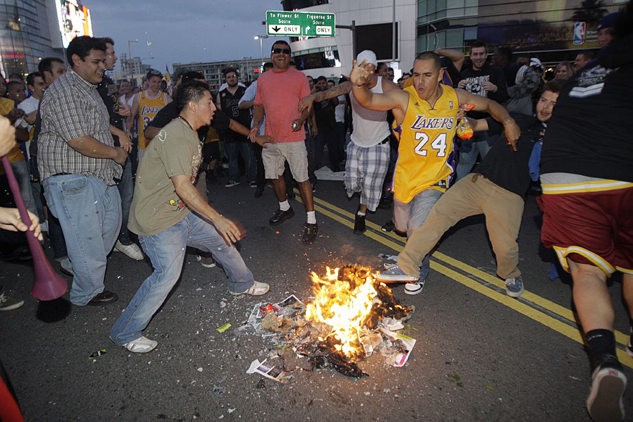 在洛杉磯湖人隊(duì)15日奪得本年度NBA總冠軍后,洛杉磯球迷涌上街頭歡慶勝利,但在慶祝過(guò)程中偶發(fā)暴力事件,警方逮捕了至少8人。