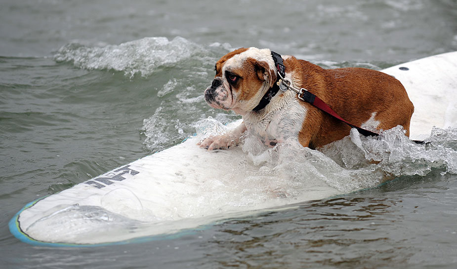 小狗沖浪比賽 讓人忍俊不禁