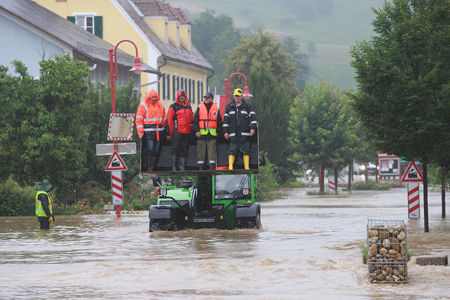 6月24日,奧地利部分地區(qū)由于連日降雨發(fā)生洪災(zāi)。當(dāng)?shù)叵廊藛T緊急出動(dòng),用各種工具將災(zāi)民運(yùn)往安全地帶。