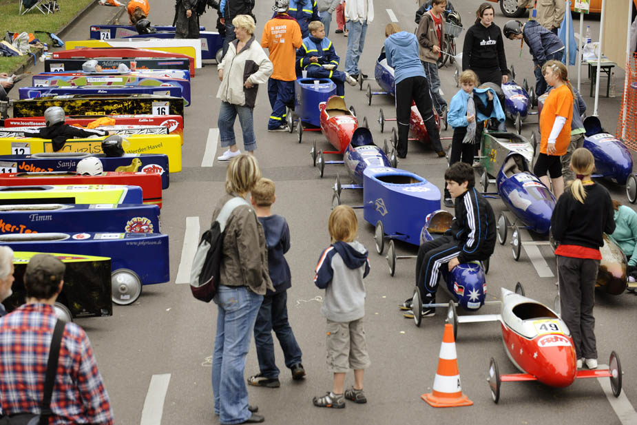6月28日,德國柏林的德比郡舉行了第50屆“肥皂盒”競(jìng)速賽車,該賽車沒有動(dòng)力裝置,參賽者親手打造的“賽車”更使比賽妙趣橫生。