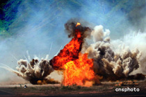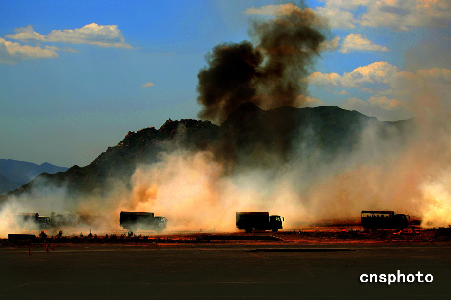 圖為運(yùn)輸車隊(duì)火速突破炮火封鎖線。