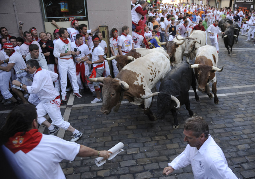 西班牙一年一度的潘普洛納奔牛節(jié)上驚險場面層出不窮。奔牛節(jié)是潘普洛納的傳統(tǒng)節(jié)日,其歷史可以追溯到1591年,每年都吸引數(shù)十萬人參加。