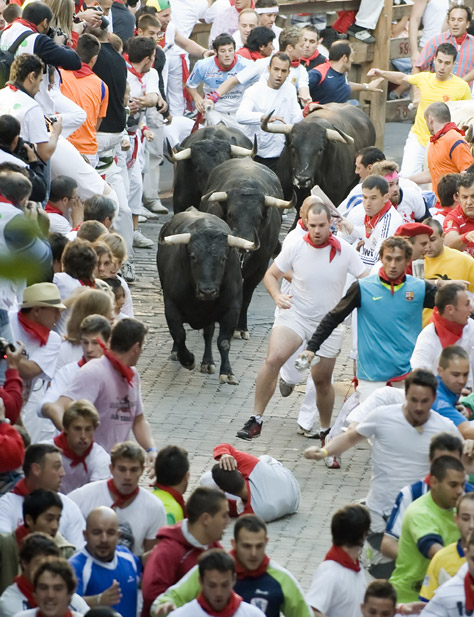 西班牙一年一度的潘普洛納奔牛節(jié)上驚險(xiǎn)場(chǎng)面層出不窮。奔牛節(jié)是潘普洛納的傳統(tǒng)節(jié)日,其歷史可以追溯到1591年,每年都吸引數(shù)十萬人參加。
