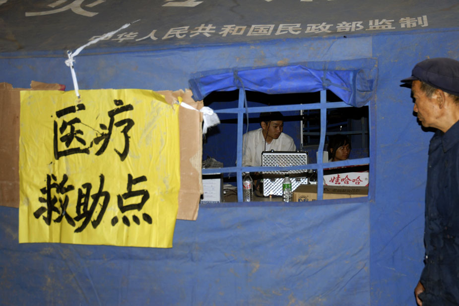 圖為首批進入重災(zāi)區(qū)官屯鄉(xiāng)官屯村的醫(yī)療隊在災(zāi)民臨時安置點設(shè)置了醫(yī)療救助點。中新社發(fā) 保旭 攝