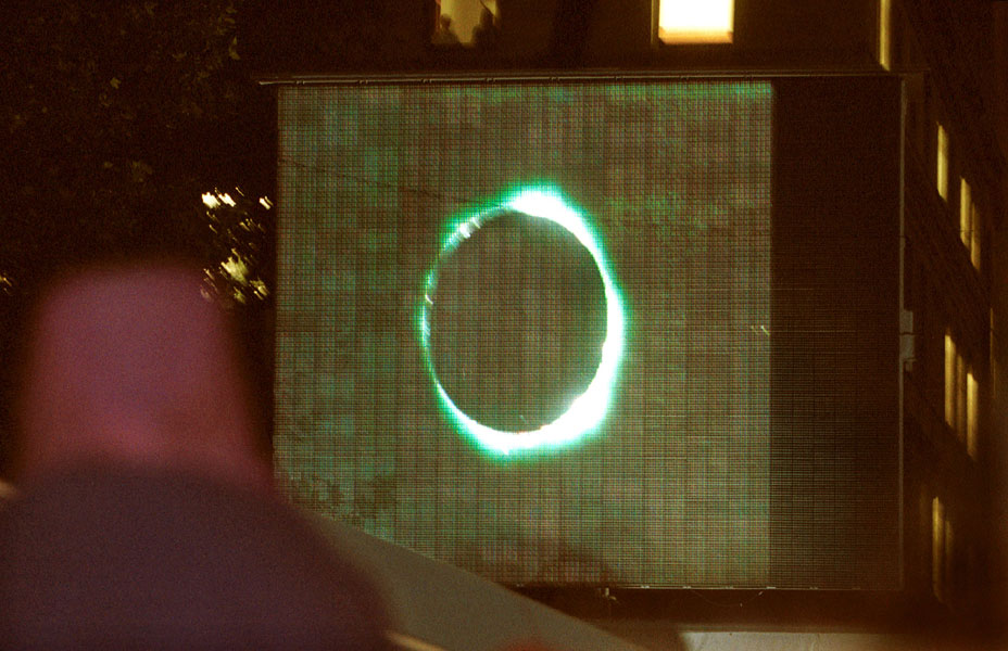 1999年8月11日,在德國(guó)斯圖加特,人們?cè)谄聊簧峡吹饺杖车奶煜蟆?/p>