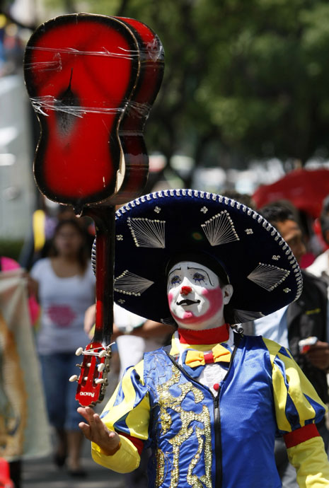 7月22日,幾百名“小丑”聚集在墨西哥首都墨西哥城的街頭參加一次小丑大游行,給人們帶來(lái)了歡聲笑語(yǔ)。