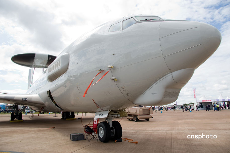 2009年7月,“2009英國費爾福德航展”在英格蘭費爾福德開展。圖為北約駐盧森堡的E-3A預(yù)警機在此次航展上亮相。中新社發(fā) 潘禹 攝