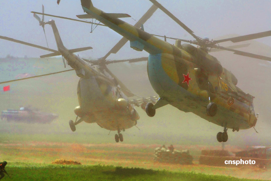 中國(guó)、俄羅斯兩軍總參謀長(zhǎng),7月23日上午到沈陽(yáng)軍區(qū)洮南合同戰(zhàn)術(shù)訓(xùn)練基地,觀看“和平使命2009”聯(lián)合反恐軍事演習(xí)。雙方以陸軍和空軍為主,中方參演部隊(duì)包括1個(gè)陸軍戰(zhàn)斗群和1個(gè)空軍戰(zhàn)斗群。俄方參演兵力包括1個(gè)陸軍加強(qiáng)摩步營(yíng)、1個(gè)空降突擊連和部分空軍兵力,雙方投入兵力兩千多人。中新社發(fā) 宋吉河 攝