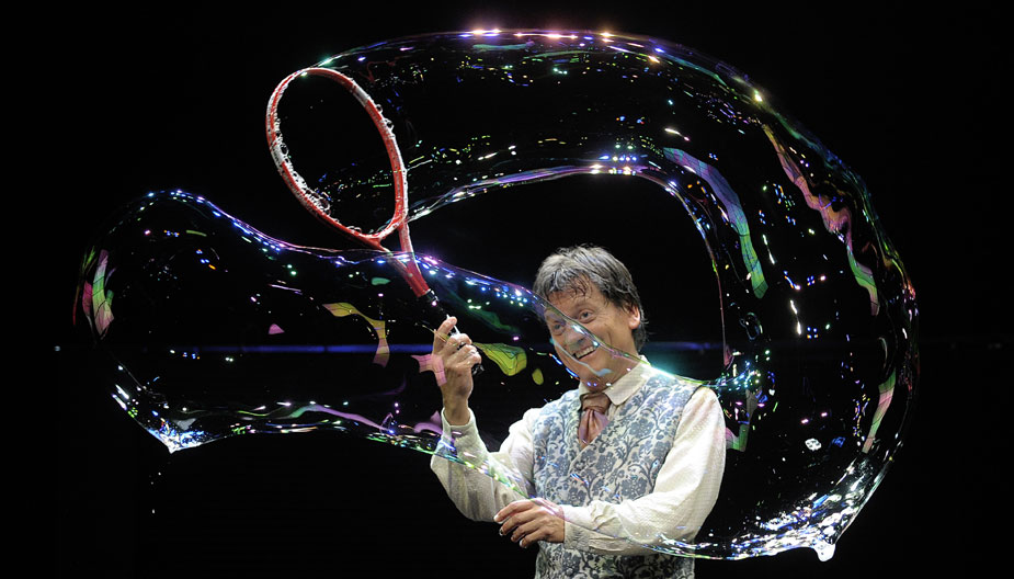 當(dāng)?shù)貢r(shí)間7月23日,西班牙國(guó)際肥皂泡藝術(shù)家皮蓬-玻爾在巴塞羅那進(jìn)行肥皂泡藝術(shù)表演。