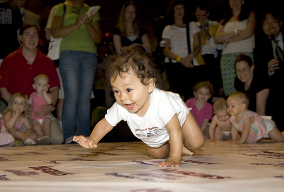 當(dāng)?shù)貢r間7月24日,美國紐約舉行了一場趣味橫生的小寶寶爬行大賽,獲得冠軍的小寶寶贏得了一年免費的紙尿褲。