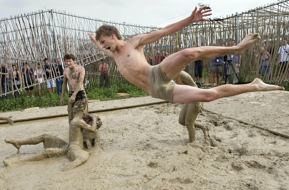 7月24日,在瑞士尼翁舉行的第34屆帕里奧音樂節(jié)上,狂熱的音樂迷們在欣賞音樂的同時還盡情的享受了一下“泥漿浴”。