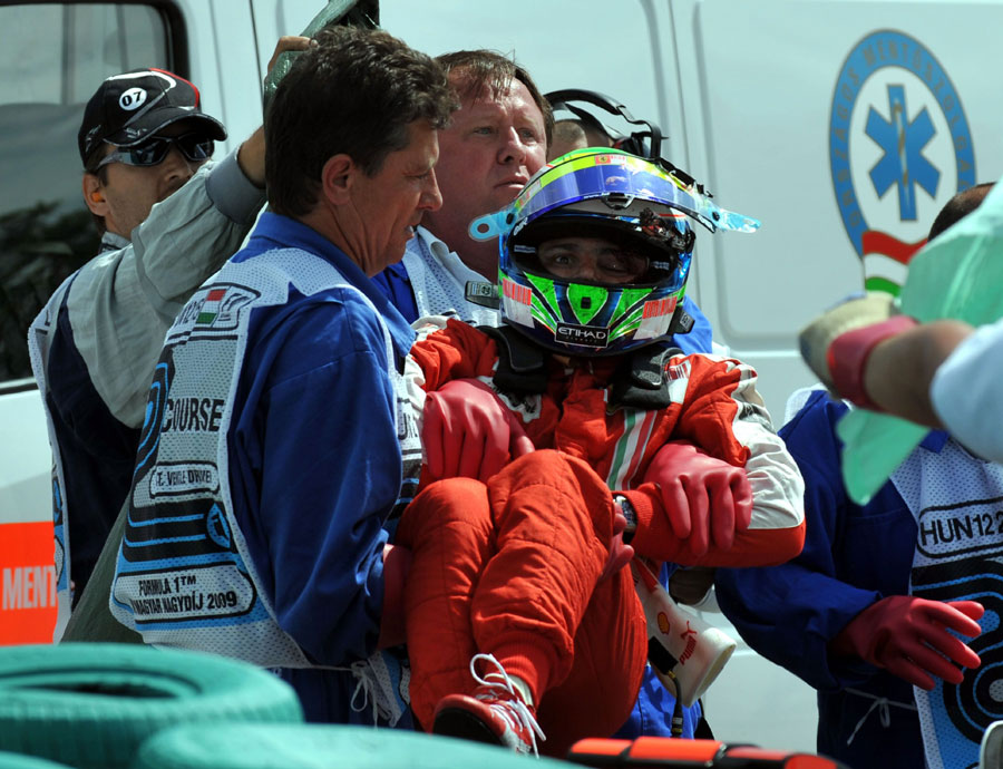 當(dāng)?shù)貢r(shí)間25日,F(xiàn)1大獎(jiǎng)賽匈牙利站的排位賽在亨格羅林賽道舉行。法拉利車隊(duì)的巴西車手馬薩的賽車在第二節(jié)沖出賽道并撞上輪胎墻,馬薩受傷后被直升機(jī)送往布達(dá)佩斯的國防醫(yī)院接受治療。據(jù)報(bào)道稱,雖然他的傷勢嚴(yán)重,但并無生命危險(xiǎn)。