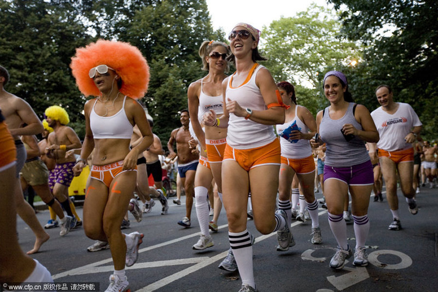 競(jìng)裸?競(jìng)速?看紐約穿內(nèi)褲跑步大賽