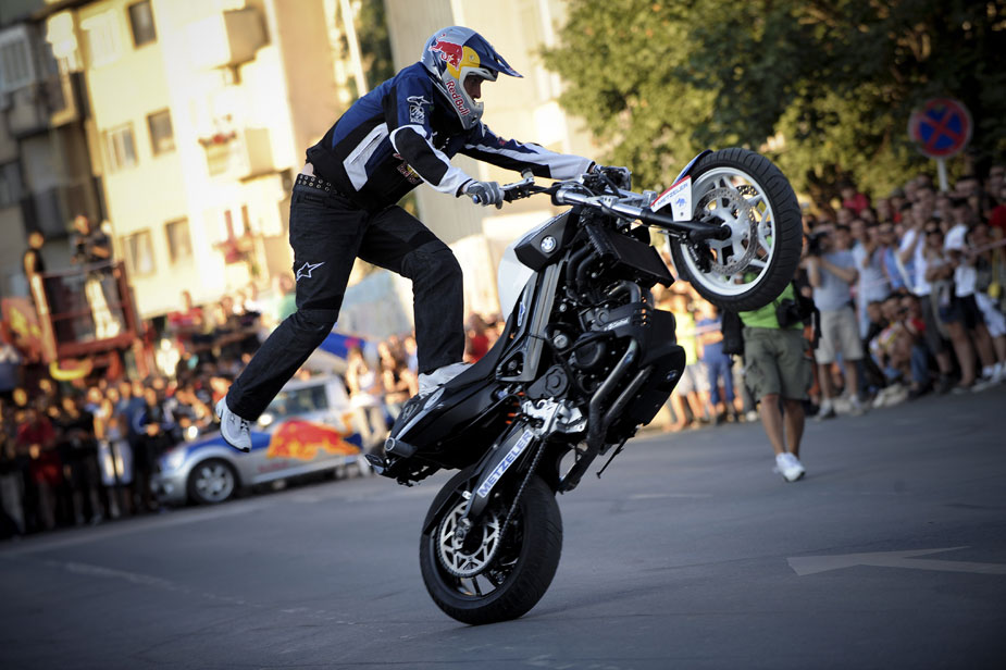 當地時間26日,德國著名的特技表演大師Chris Pfeiffer在科索沃地區(qū)的Pristina進行一場街頭表演。