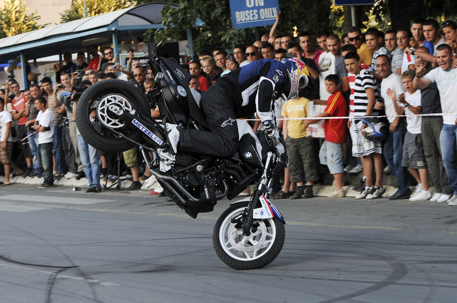 當?shù)貢r間26日,德國著名的特技表演大師Chris Pfeiffer在科索沃地區(qū)的Pristina進行一場街頭表演。