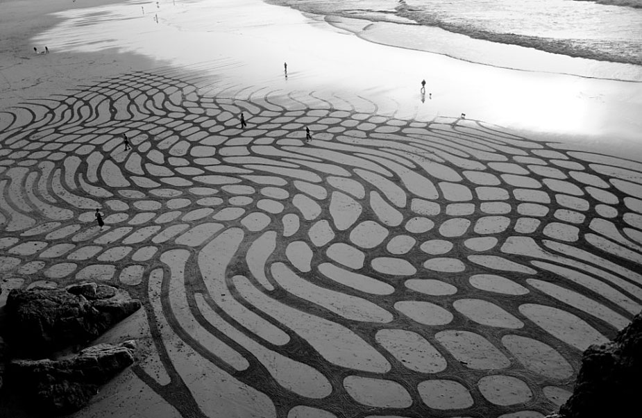 據(jù)英國媒體7月27日報道,藝術(shù)家Andres Amador用耙子在沙灘上作畫,眾多中心對稱的幾何圖形,不在乎是否能長久保留,但求被海浪帶走前與大自然的完美融合。