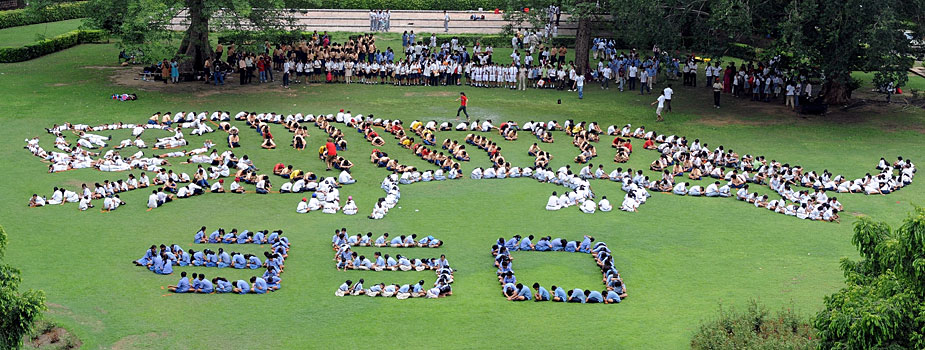 7月28日,約2000名學(xué)生在新德里化妝成老虎的臉譜,圍坐成老虎的造型,與官員和野生動物專家們一起呼吁人們保護(hù)孟加拉虎和其他野生動物。