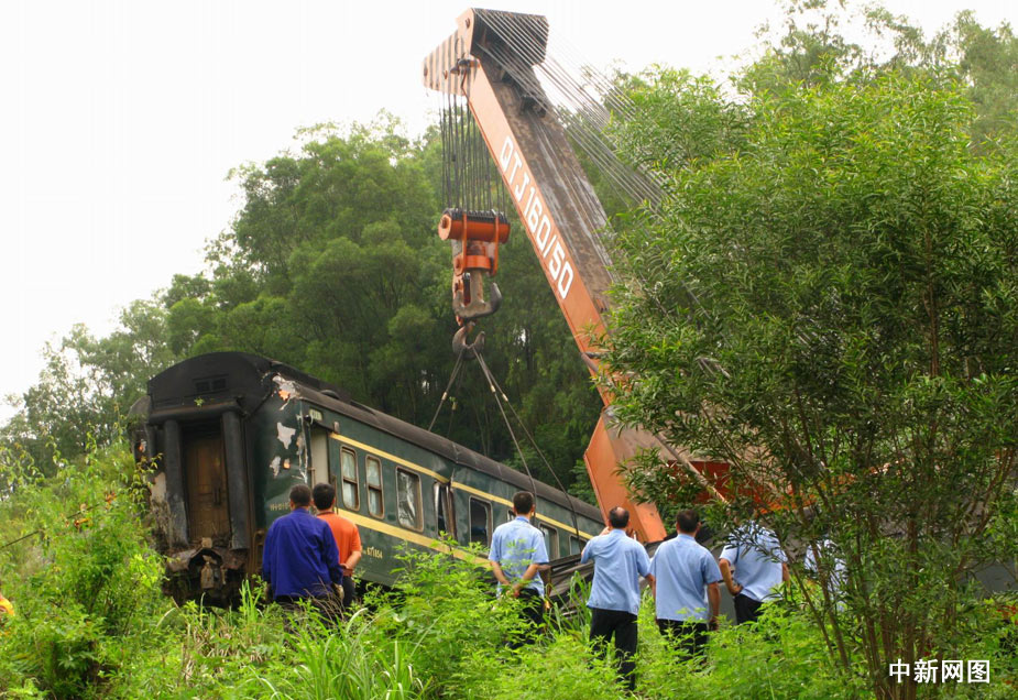 2009年7月29日4時(shí)22分,由襄樊開往湛江的1473次旅客列車運(yùn)行至焦柳線廣西境內(nèi)古砦至寨隆間,因連日持續(xù)強(qiáng)降雨造成山體崩塌掩埋線路,列車機(jī)車及機(jī)后1-4位車輛脫軌,造成4名旅客死亡,50余名旅客受傷,焦柳線中斷行車。曹偉軍 攝