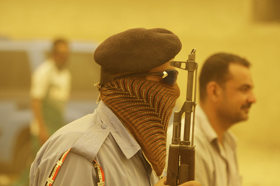 7月29日,伊拉克首都巴格達(dá)遭受沙塵暴襲擊。當(dāng)?shù)鼐用窦娂娪酶鞣N物品保護(hù)住口鼻,以免吸入沙塵。