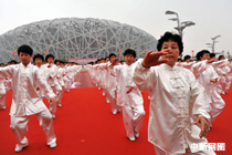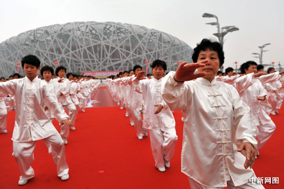 8月8日,全國首個“全民健身日”北京主會場啟動儀式上,三萬多群眾進(jìn)行太極拳展示活動,在世界吉尼斯總部認(rèn)證官員的見證下成功打破世界紀(jì)錄。 中新網(wǎng)記者 金碩 攝