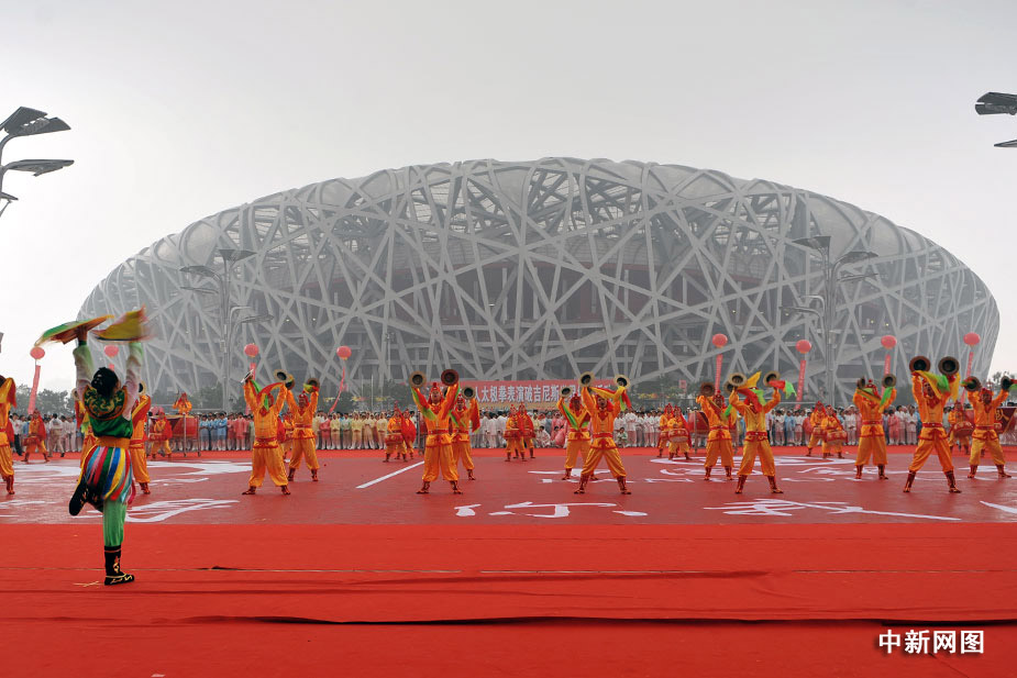 8月8日,全國首個“全民健身日”北京主會場啟動儀式上,三萬多群眾進行太極拳展示活動,在世界吉尼斯總部認證官員的見證下成功打破世界紀錄。中新網(wǎng)記者 金碩 攝