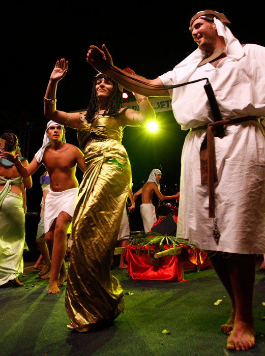 圖為市民穿上演出服裝參加狂歡節(jié)進行表演。