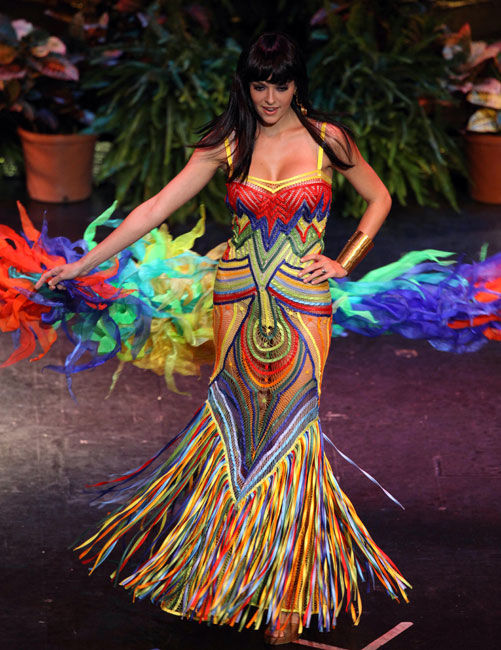 圖為哥倫比亞小姐米歇爾展示民族風(fēng)格服飾。