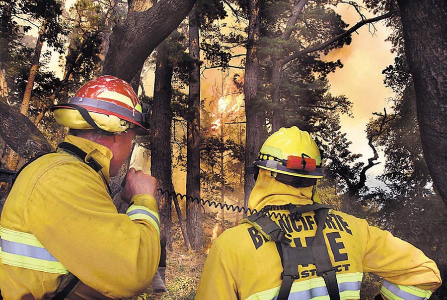 2009年8月13日,加州中北部的圣塔克魯茲開始燃起山火,幾千名陸續(xù)趕到的消防隊(duì)員參加滅火。