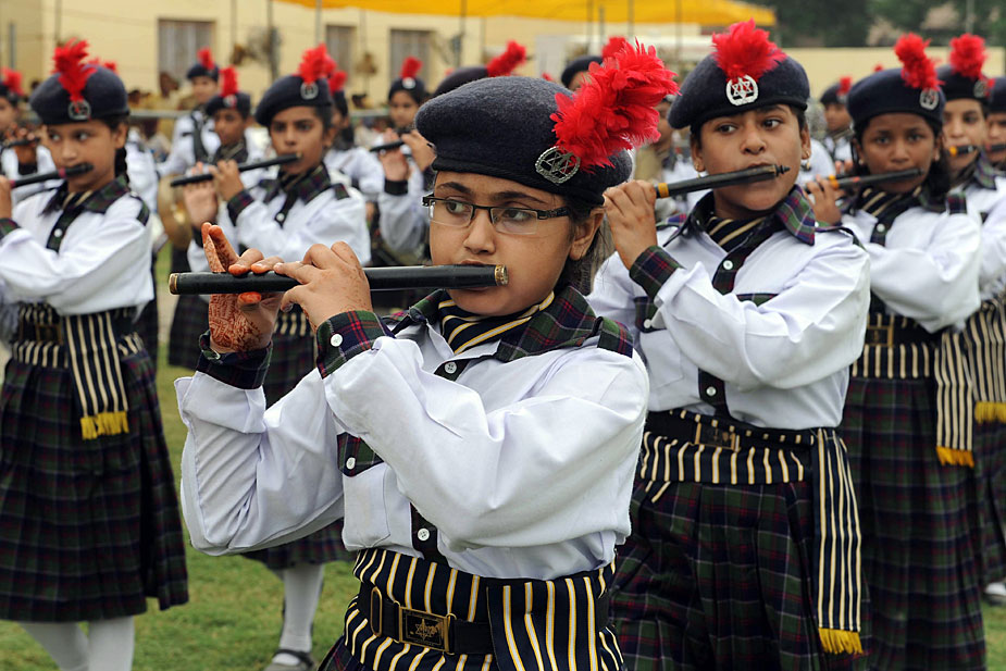 圖為慶祝獨(dú)立62周年閱兵式上的印度童軍表演隊(duì)列。