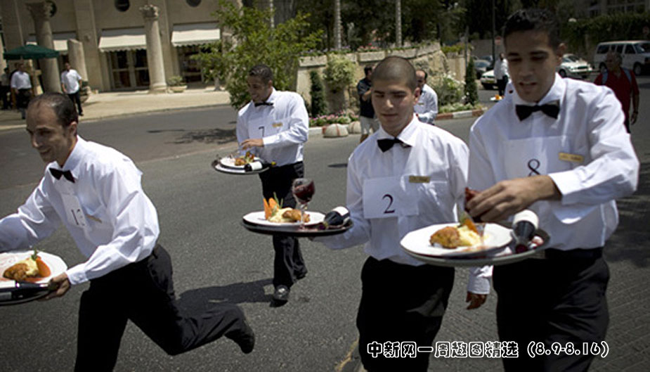 8月11日,大約30名以色列服務(wù)生端著盛有雞肉、紅酒的托盤參加在耶路撒冷舉行的服務(wù)生賽跑。點(diǎn)擊觀看詳細(xì)內(nèi)容