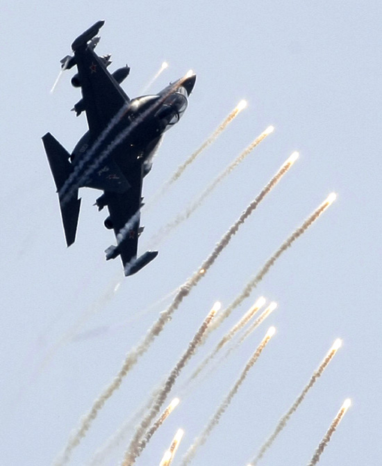 8月18日,2009莫斯科國際航空航天展(MAKS-2009)開幕。圖為精彩的飛行表演。