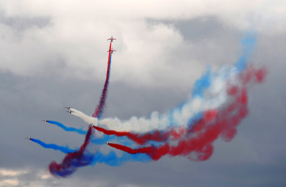 8月21日,在俄羅斯茹科夫斯基市舉行的第九屆國(guó)際航空航天展覽會(huì)上,法國(guó)著名的“法蘭西巡邏兵”飛行表演隊(duì)進(jìn)行了精彩的飛行表演。