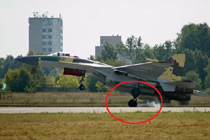 蘇-35驚險(xiǎn)單輪著陸