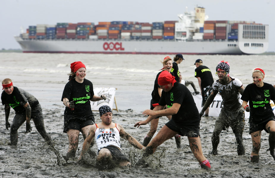 當(dāng)?shù)貢r(shí)間8月30日,德國(guó)北部海邊小鎮(zhèn)Brunsbuettel的泥灘上進(jìn)行一場(chǎng)別開(kāi)生面的泥地足球賽。男女“球員”混合在一起,泥地中盡情撒野,享受著不一樣的樂(lè)趣。
