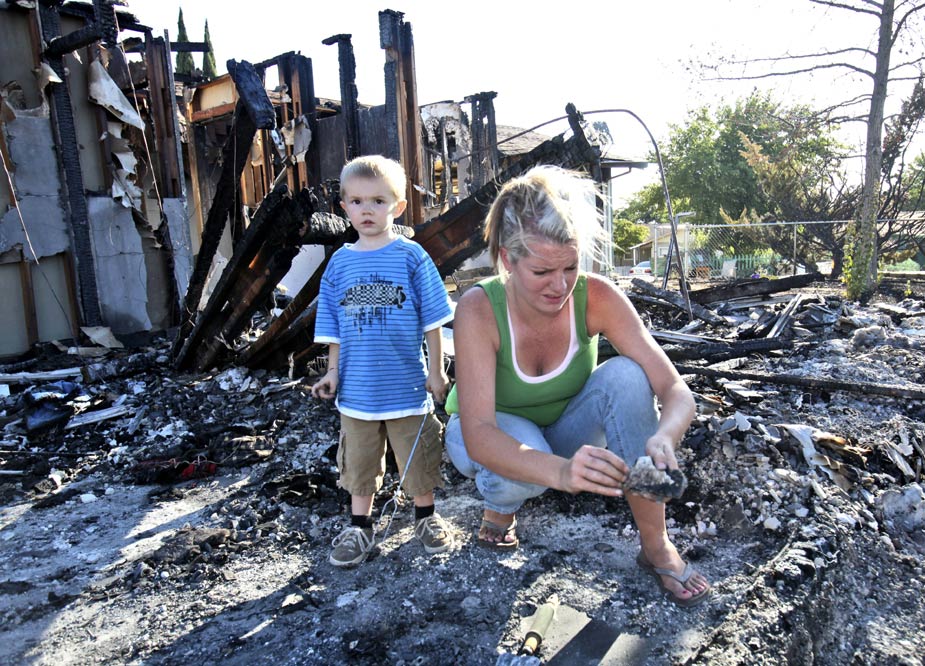 加州消防部門表示,火勢在一夜之間幾乎擴散了一倍,如今五個鎮(zhèn)共計一點四萬公頃茂盛的灌木叢著火,波及拉克利仙塔至拉加尼達弗林楚奇之間十九公里的范圍。圖為受災(zāi)的民眾在被燒毀的家園尋找個人物品。