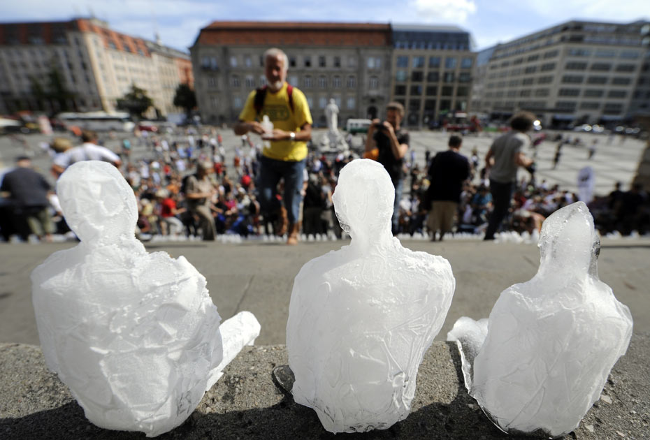 9月2日,德國(guó)柏林,世界野生動(dòng)物基金會(huì)(WWF)將1000個(gè)小冰人被放置在了御林廣場(chǎng)音樂(lè)廳的臺(tái)階上,小冰人慢慢融化成水。活動(dòng)的組織者希望此舉能引起公眾對(duì)于全球變暖的關(guān)注。來(lái)源:中國(guó)新聞網(wǎng)