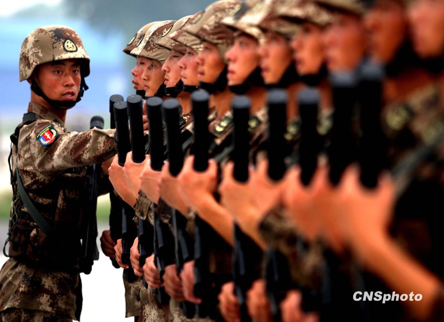9月3日,北京郊區(qū)閱兵村的官兵正在加緊訓練。中新社發(fā) 宋吉河 攝