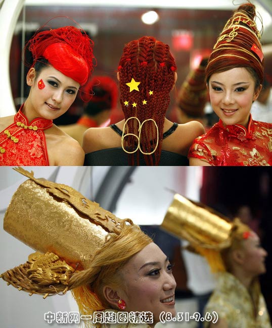 9月2日,昆明發(fā)型設(shè)計(jì)師們推出多款“國(guó)慶”發(fā)型,將黃色五角星、紅旗等元素應(yīng)用在多款不同的發(fā)型上,每一款發(fā)型又都獨(dú)具特色。圖片來(lái)源:CFP