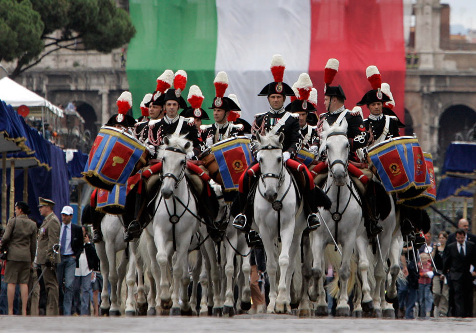 2009年6月2日,意大利首都羅馬舉行一年一度的閱兵式,慶祝意大利共和國成立63周年。閱兵儀式按照慣例在羅馬市中心帝國廣場大道上舉行,來自意大利三軍各兵種、憲兵和警察部隊(duì)、各軍事院校的6400名官兵依次列隊(duì)接受了檢閱。