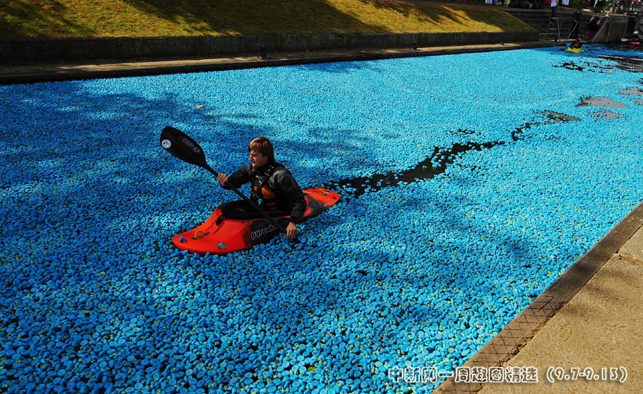 9月6日,英國倫敦當(dāng)日舉行了一場“大英賽鴨活動”。此次活動中,大約有20.5萬只藍(lán)色橡膠鴨子漂浮在泰晤士河上,這也打破了現(xiàn)有的20萬只鴨子漂流的世界紀(jì)錄。圖片來源:中國新聞網(wǎng)