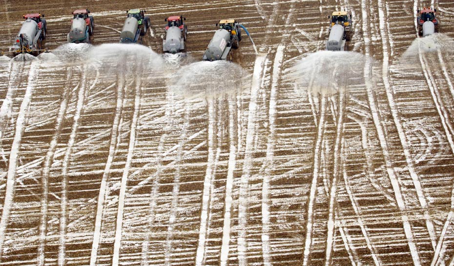 16日,比利時(shí)奶農(nóng)向地里傾倒了3百萬(wàn)升鮮牛奶做“農(nóng)肥”,抗議奶價(jià)暴跌。
