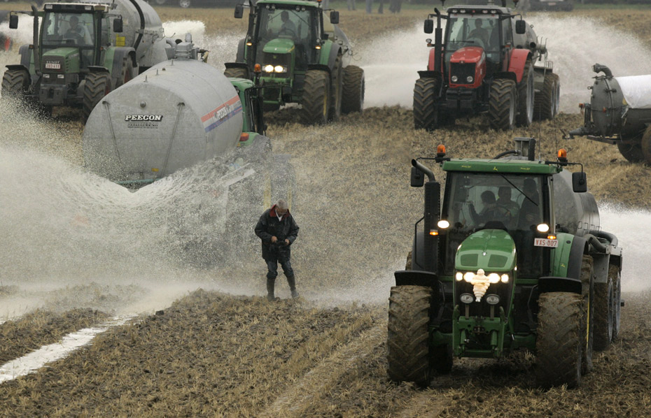 16日,比利時(shí)奶農(nóng)向地里傾倒了3百萬升鮮牛奶做“農(nóng)肥”,抗議奶價(jià)暴跌。奶農(nóng)們認(rèn)為,提高牛奶生產(chǎn)配額造成歐盟市場(chǎng)上奶制品供大于求,進(jìn)而引發(fā)價(jià)格暴跌。來源:中國(guó)新聞網(wǎng)