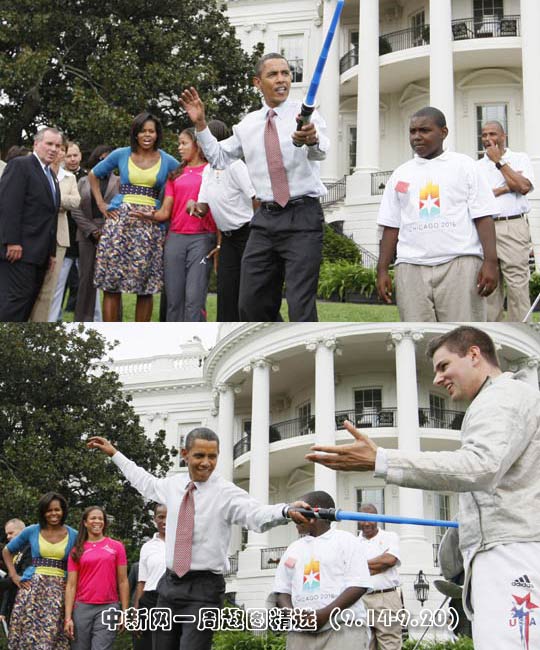 9月16日,美國華盛頓白宮南草坪舉行一場以支持芝加哥申辦2016年夏季奧運(yùn)會為主題的奧運(yùn)體育項目展示活動,總統(tǒng)奧巴馬及第一夫人米歇爾·奧巴馬出席活動。圖片來源:中國新聞網(wǎng)