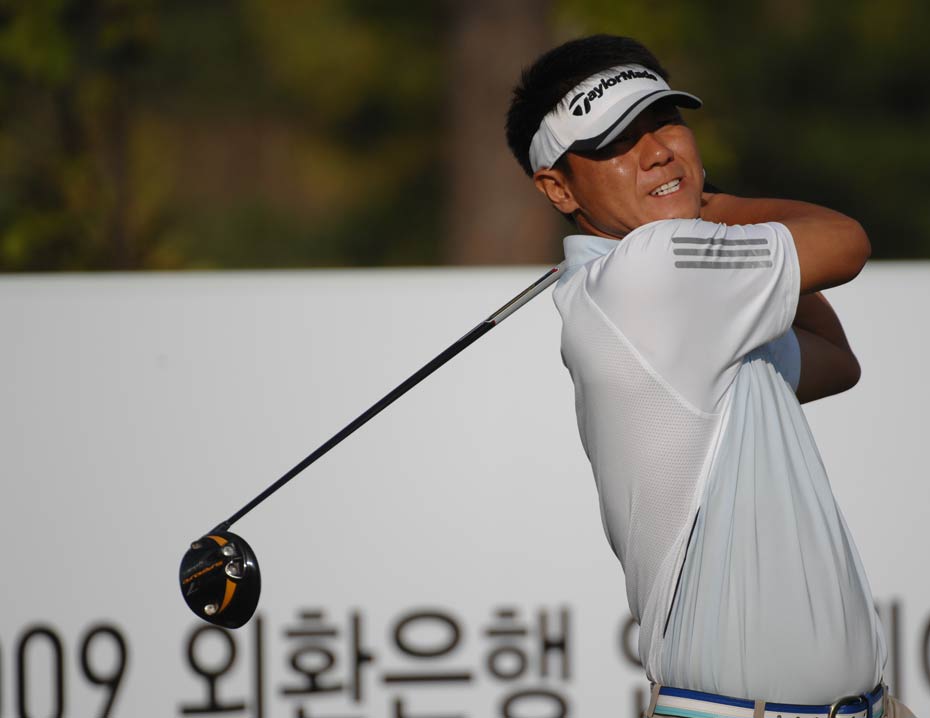 2009“韓國(guó)KEB銀行”中韓職業(yè)高爾夫球巡回賽韓國(guó)站于今天在韓國(guó)OSTAR高爾夫球俱樂部正式開桿,有47名球員代表中國(guó)參賽。圖為選手們上場(chǎng)第一天,揮桿開打的場(chǎng)面。