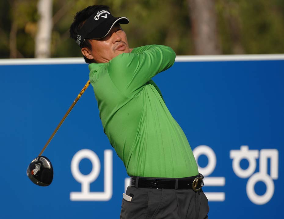 中新網(wǎng)9月24日電 2009“韓國(guó)KEB銀行”中韓職業(yè)高爾夫球巡回賽韓國(guó)站于今天在韓國(guó)OSTAR高爾夫球俱樂(lè)部正式開(kāi)桿,共有133名球員將進(jìn)行為期4天的角逐,其中有47名球員代表中國(guó)參賽,包含7名中國(guó)高爾夫球業(yè)余國(guó)家隊(duì)選手和3名韓籍球員。冠軍將獲得80,000,000韓幣和一座冠軍獎(jiǎng)杯。圖為選手們上陣第一天揮桿開(kāi)打的場(chǎng)面。