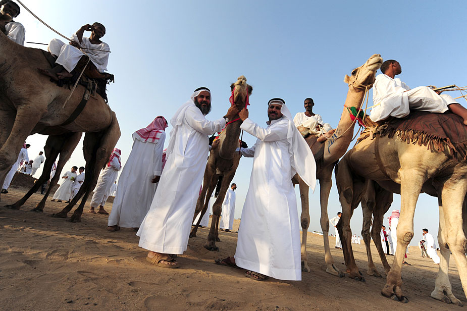9月25日,在沙特阿拉伯東部的哈利斯,駱駝騎士們騎著自己的座駕在大漠中飛馳。圖片來(lái)源:中國(guó)新聞網(wǎng)